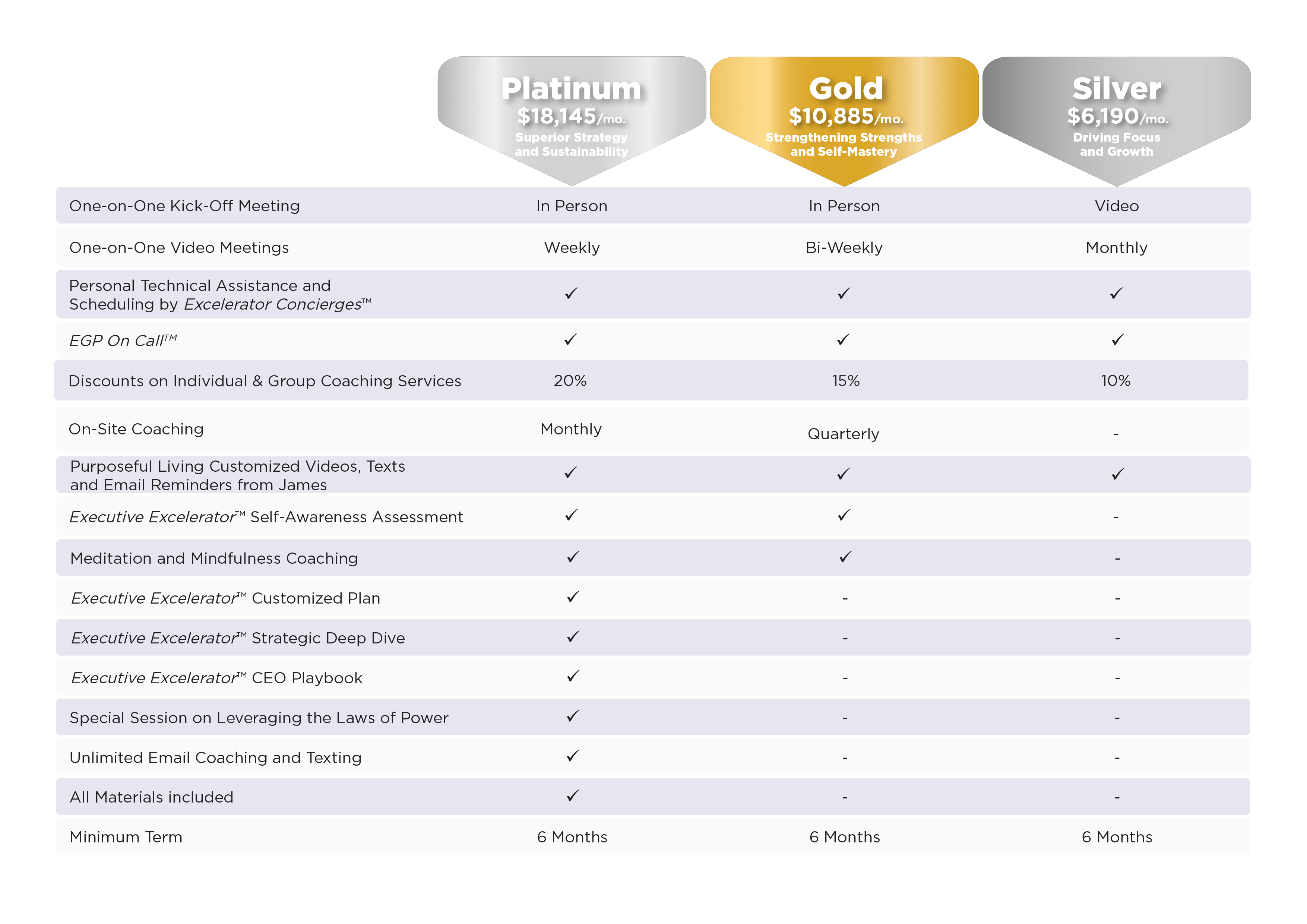 There is no contract and no obligation to move forward after this call. During the Power Hour, you can confidentially share any concerns or challenges you are having, as well as your aspirations. James will share with you tools and ideas that may be helpful to you on your journey, and you can decide for yourself if you would like to continue working with him, one of our other executive coaches, or not at all.